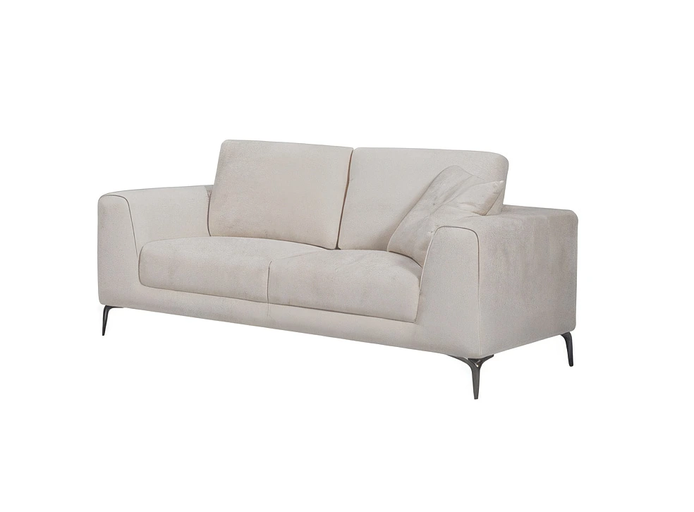 A modern, minimalist loveseat featuring gently curved arms and a low-profile design for a soft, contemporary look. The cream upholstery complements a variety of interiors, while the subtle curves add a touch of elegance without compromising the clean, streamlined silhouette. Perfect for living spaces seeking understated style and everyday comfort.
