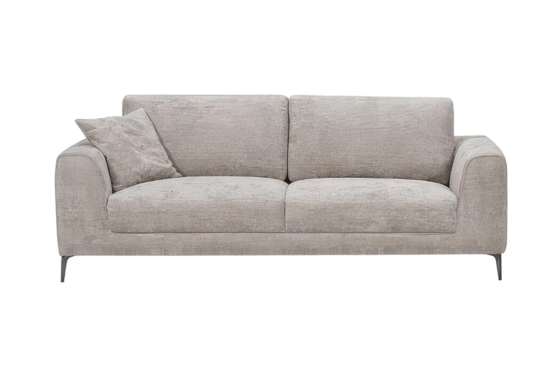 A modern, minimalist sofa featuring gently curved arms and a low-profile design for a soft, contemporary look. The light grey upholstery complements a variety of interiors, while the subtle curves add a touch of elegance without compromising the clean, streamlined silhouette. Perfect for living spaces seeking understated style and everyday comfort.